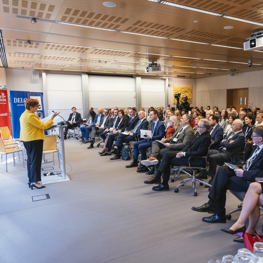 Med osrednjimi govorniki sta bila: Kerstin Jorna, generalna direktorica pri Evropski komisiji; dr. Tomas Casas i Klett, profesor z Univerze St. Gallen; ki sta osvetlila ključne izzive in priložnosti na področju evropske konkurenčnosti in trajnostnega razvoja.